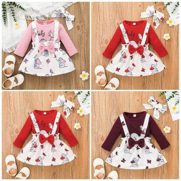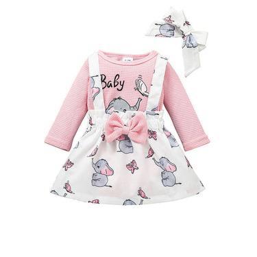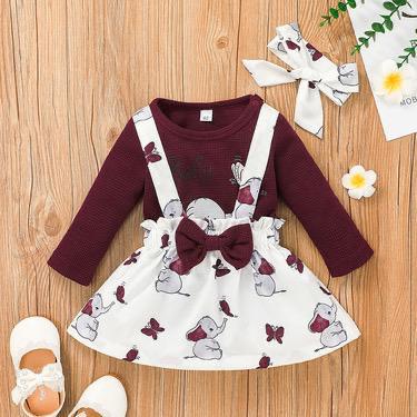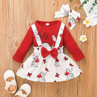 Cute girl's new sweet romper suit cartoon elephant print suspender skirt two-piece
