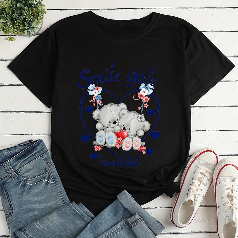 Sleeve : Short SleevePattern : AnimalPattern : CartoonNeckline : Round NeckMaterial : Cotton