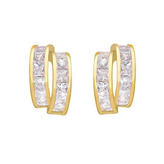 Simple C-shaped Inlaid Transparent Diamond Earrings