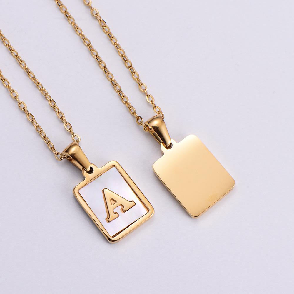 Gold Stainless Steel Square Brand White Shell Letters Necklace