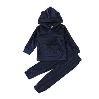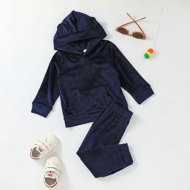 New children's sweater two-piece casual baby solid color hooded top pants set
