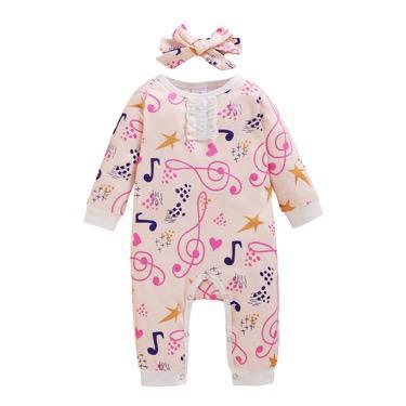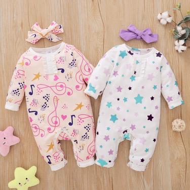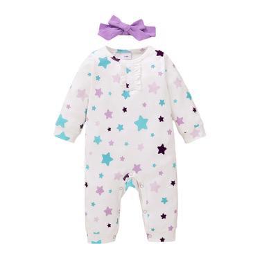 Winter Little Star Printed Long Sleeve Turban One Piece Romper