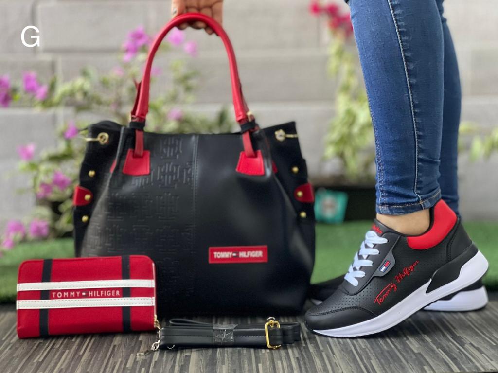 This Tommy Hilfiger 3 in1 features the versatility and comfort needed in every casual footwear. The durable heel is evenly balanced for comfortable movement and easy traction; This classy footwear and handbag gets the attention of on-lookers with its trendy and gorgeous finish.