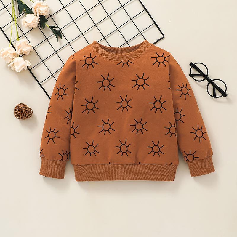 Autumn Children's Suit Boys And Girls Sun Print Pullover Two-piece Set