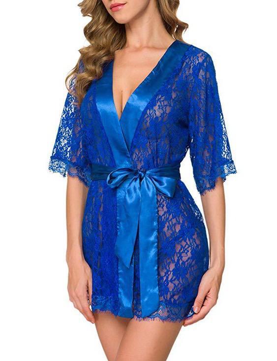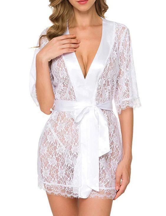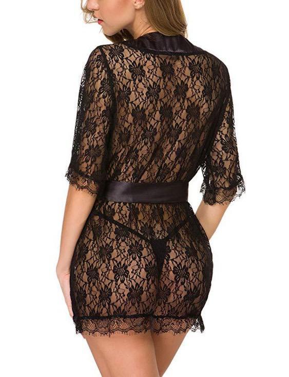 Women Robe Dress Lace Sheer See-Through Lingerie Solid Sexy Lingerie Erotic Babydoll | Nightdress | Nightgown | Sleepwear