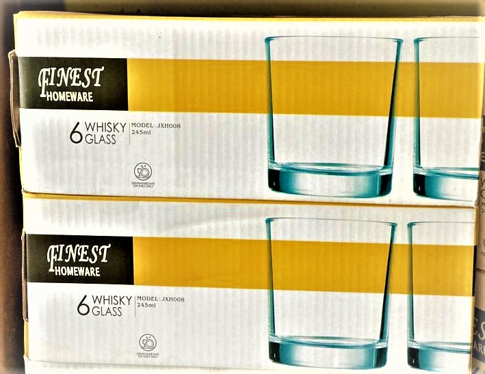 Finest Homeware 6 Set Whisky Glass, Crystal clear Model: JXH008, 245ml, Dishwasher safe, top shelf only. Perfect for Home, Restaurant and Parties. It can be given as a gift to love ones.
