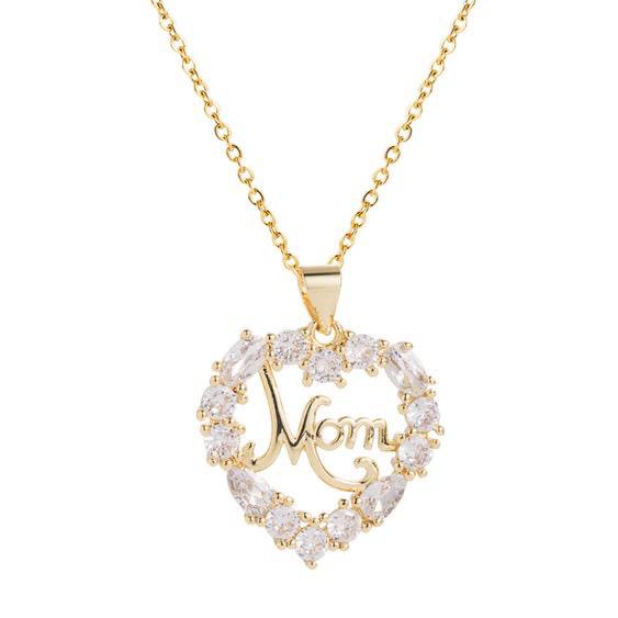 Heart Letters Mom Pendant Copper 18k Gold-plated Inlaid Zircon Necklace
