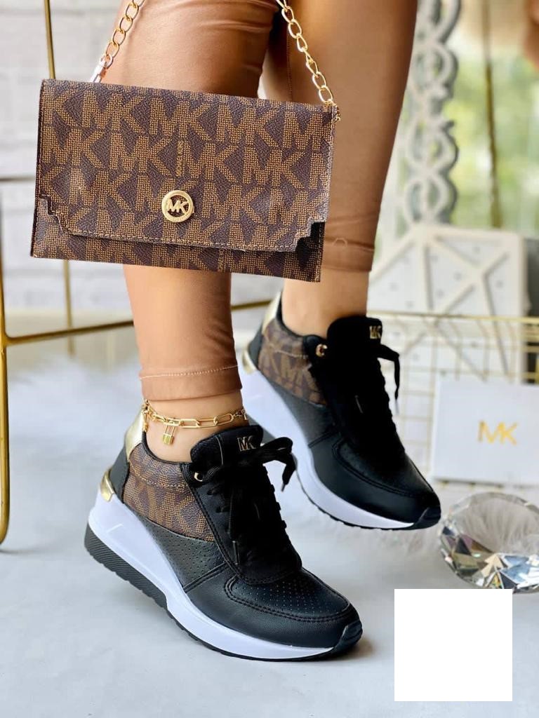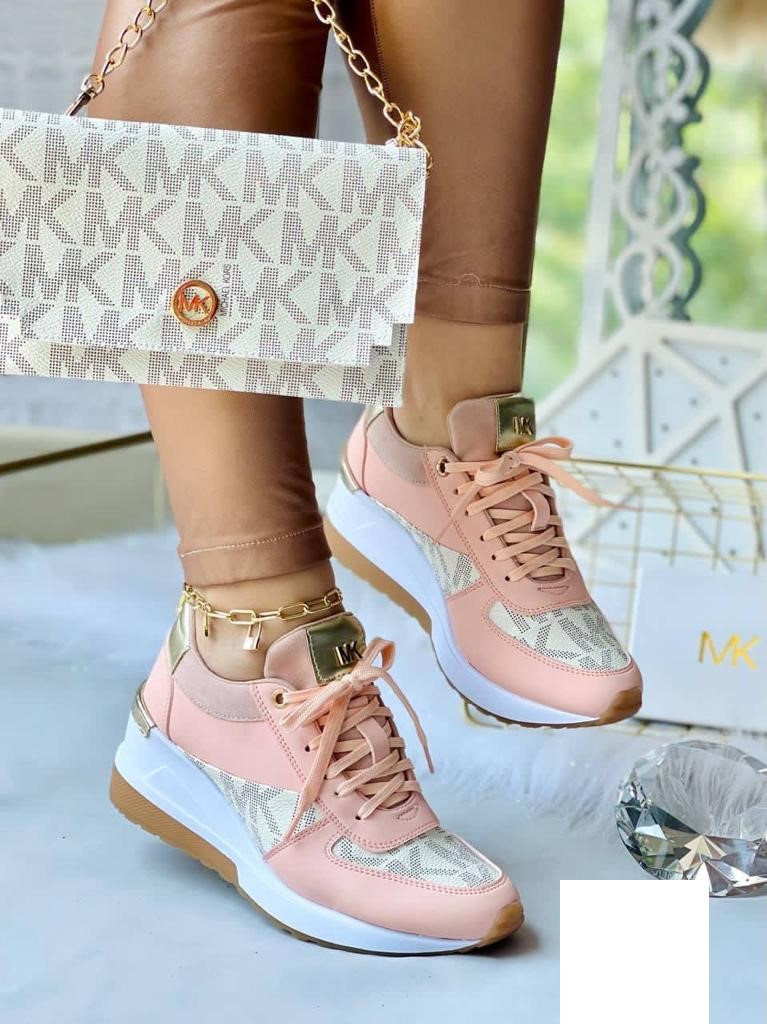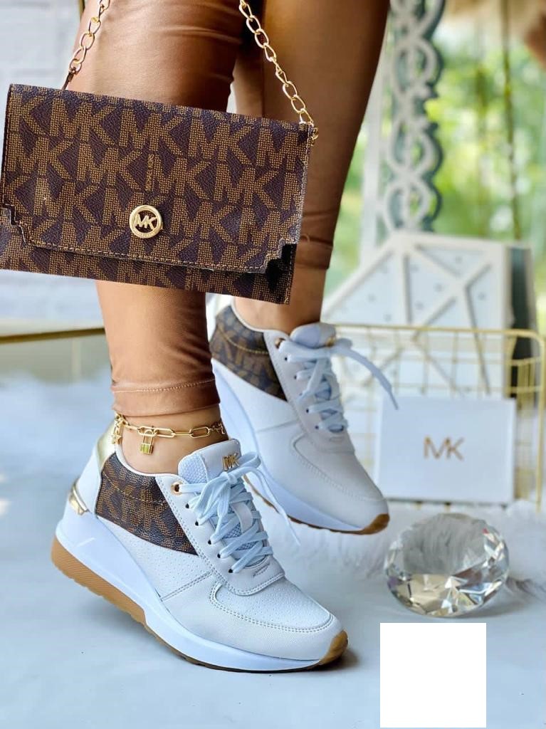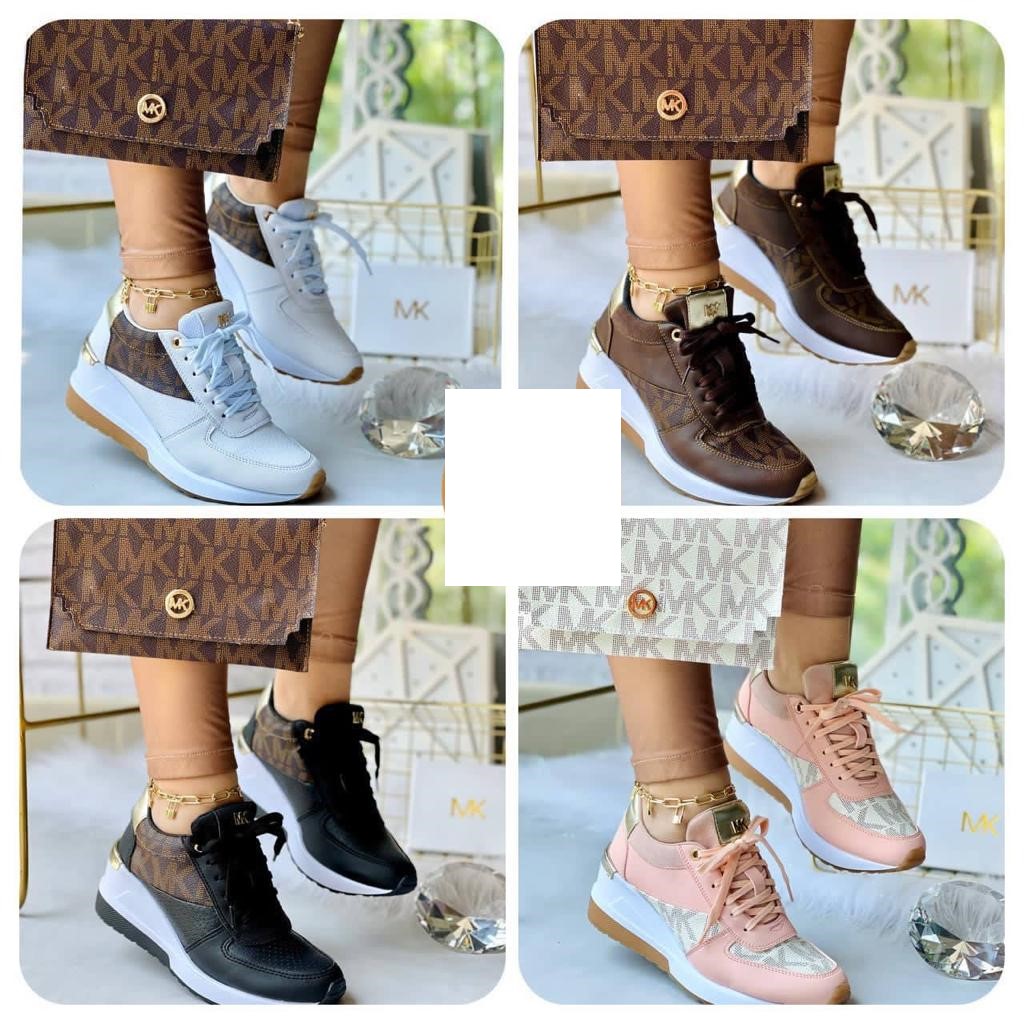 Elevate your leisurewear style in the MICHEAL Micheal Kors Monique Bag and Trainer. Almond toe. Lace-up closure. Fashion hardware. Textile, polyester upper. Cotton lining. Textile insole. Rubber outsole.