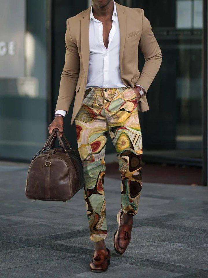 Men's Casual Printed Suit Pant Trouser
