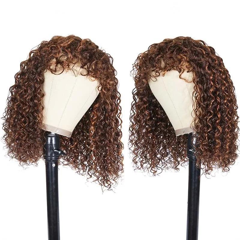 Product Name: Nadula #4/30 Mix Color Bob Wig Deep Wave Highlight Human Hair Wig With Bangs