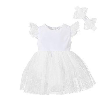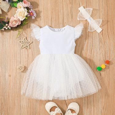 Baby Girl Summer White Sweet Flying Sleeve Mesh Dress