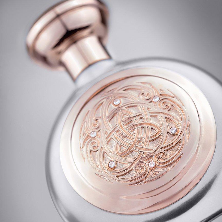 Dazzling and bejewelled, Sovereign signals significant advance in the world of deluxe fragrances. Redefining the very essence of opulence it stars a cortex of ultra-rare Rose de Mai, sweet and bewitchingly complex. Evocative of scentdrenched walled gardens it enchants and beguiles, adding fresh violet and peppery geranium to its silky rose-rich roots. Sovereign is presented in an artisan bottle emblazoned with an intricate rose gold Celtic shield embedded with diamonds. A natural leader set to reign supreme.