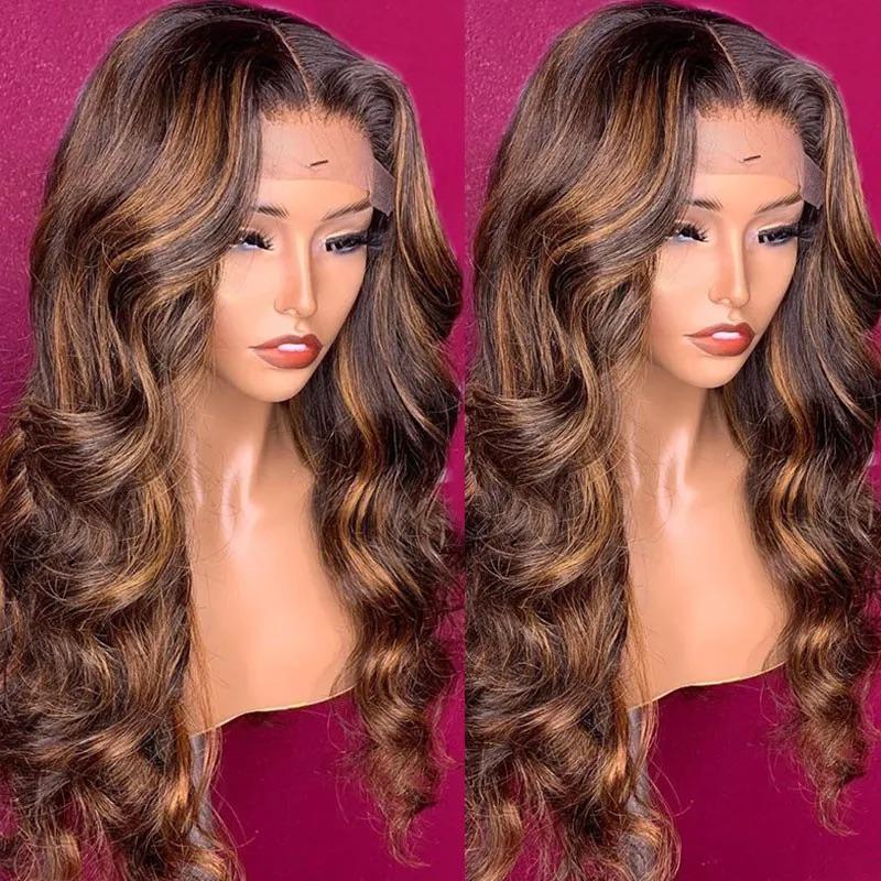 Product Name: Bloomzon Brown Highlight Human Hair Wigs Brazilian Body Wave Hair Wigs Colored Wigs With Caramel Balayage For Black Women