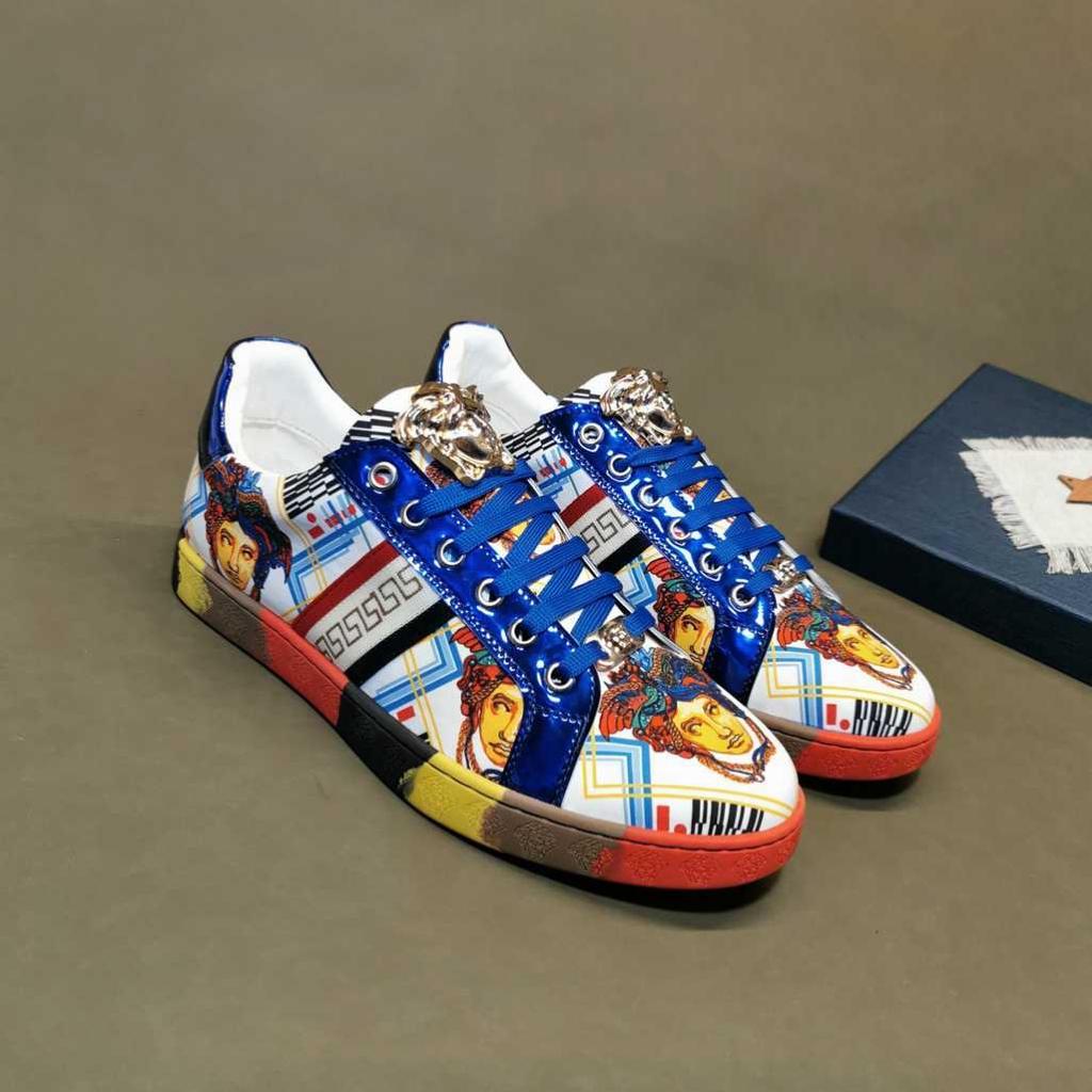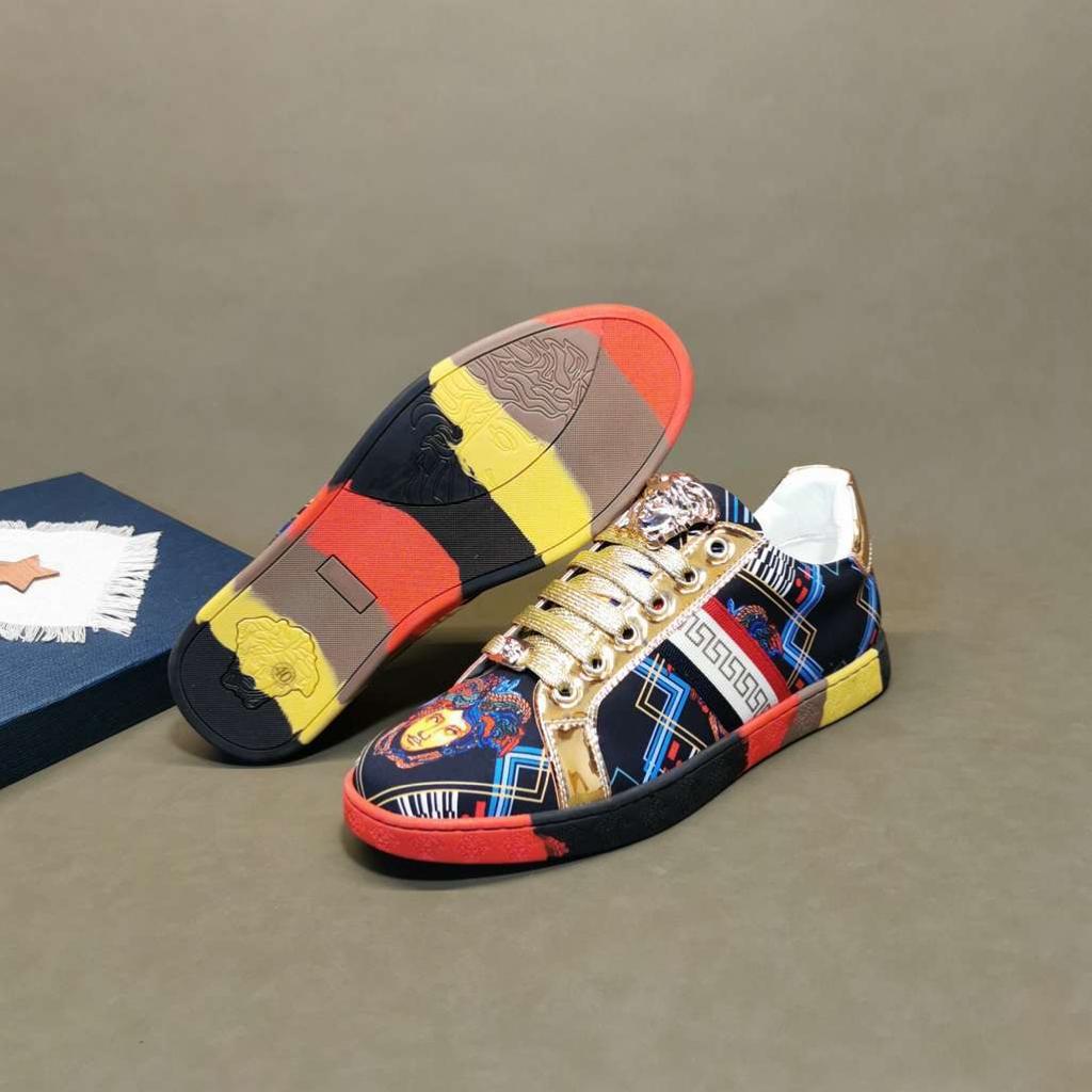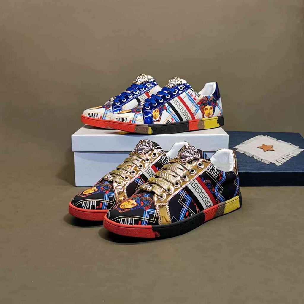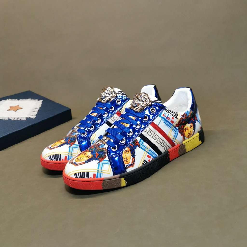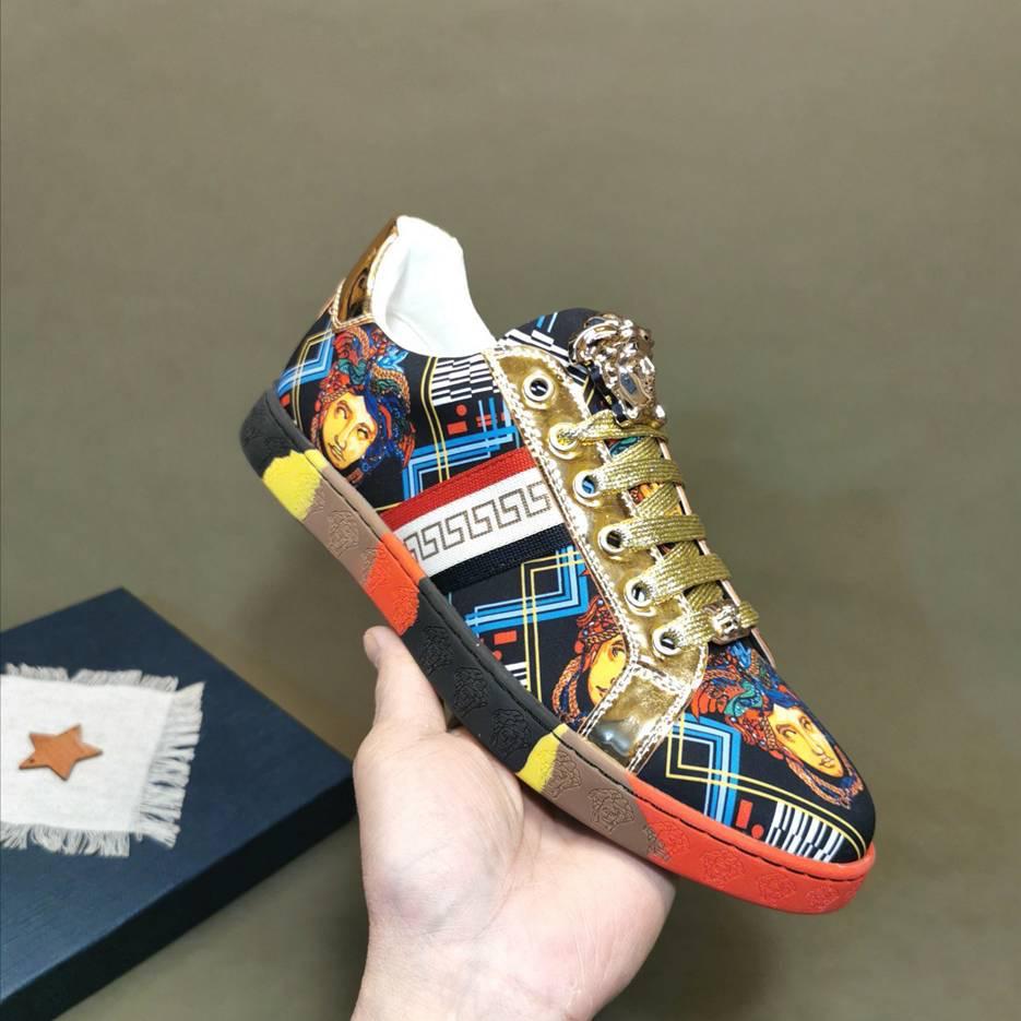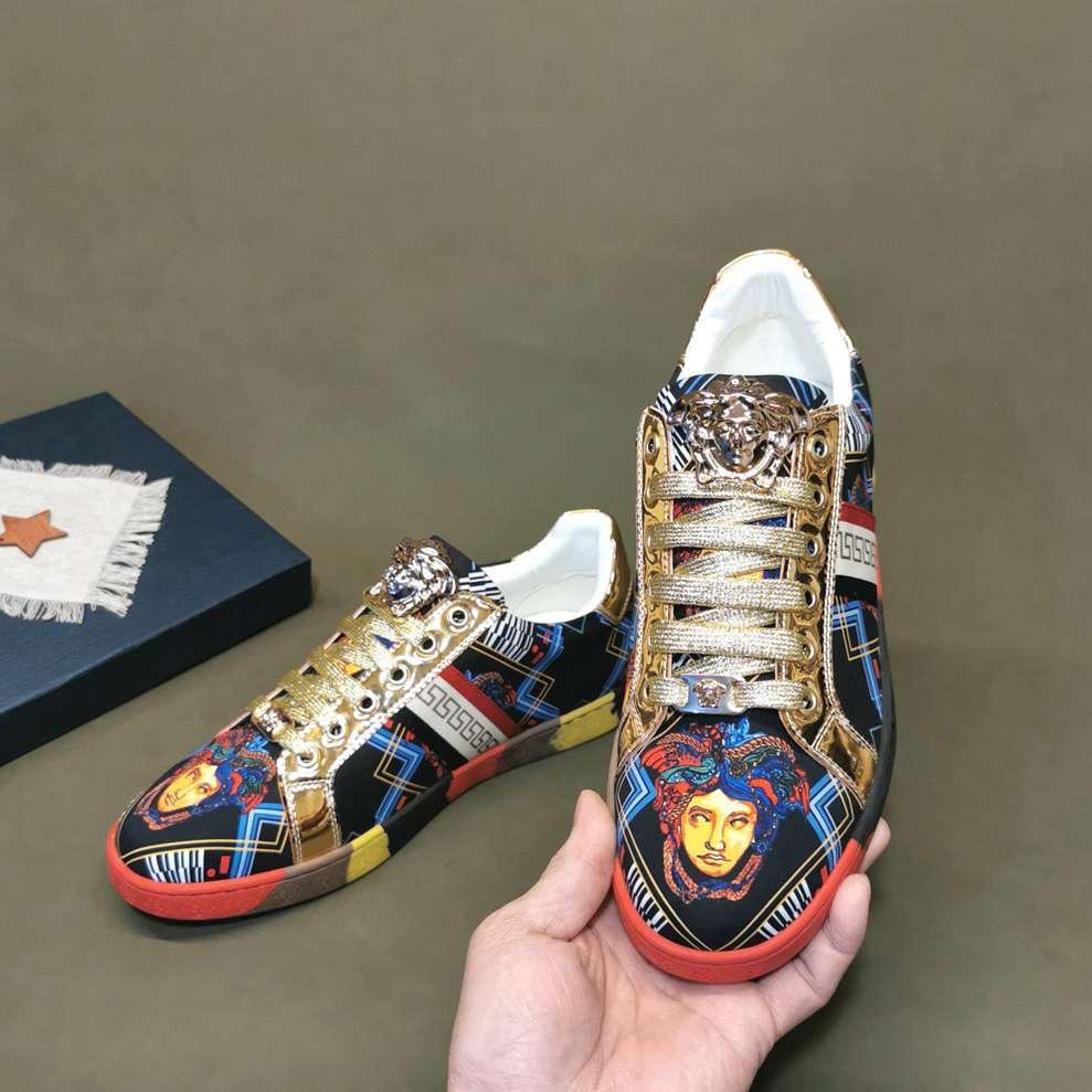 Update your closet with Designer Versace men sneaker the Greca low top sneakers with printed Logo, lace up closure is a High quality sneaker, that will meet your every day fashion style, designed to last. Crafted from leather.