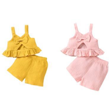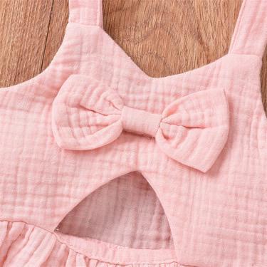 Bring a smile to your little one's face with this baby sling hollow bow-knot blouse summer sleeveless cotton suit , it's an ideal choice for moms.
