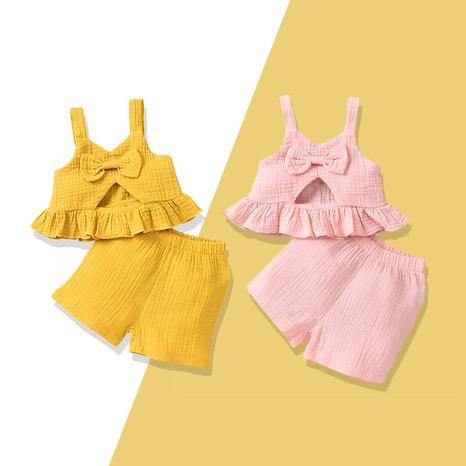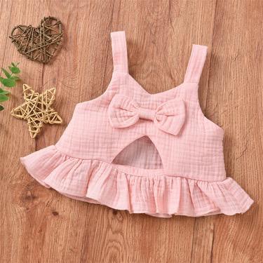 Girl baby sling hollow bow-knot blouse summer sleeveless cotton suit
