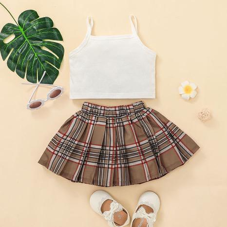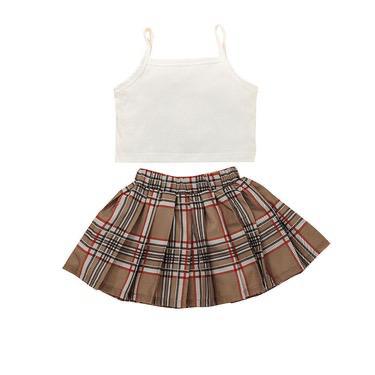 Girls Suspender Skirt Plaid Skirt Two-Piece Little Girl Skirt Suit