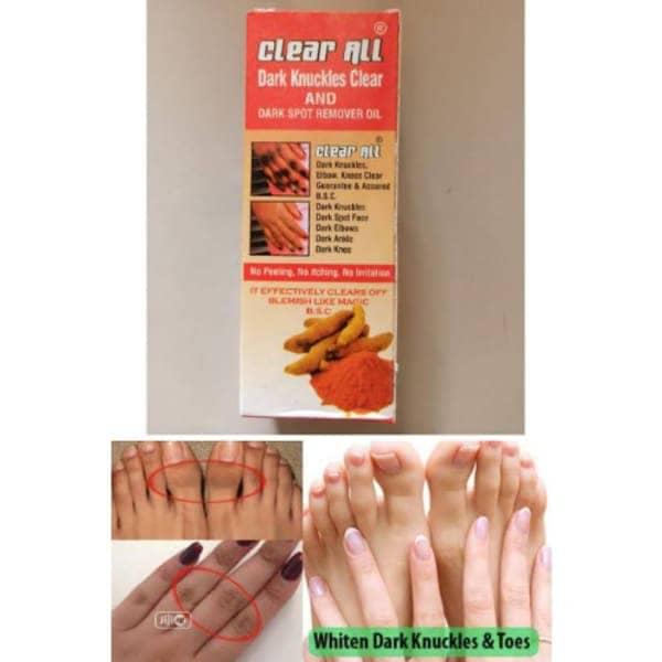 Clear All Dark Knuckles Clear And Dark Spot Remover Oil:Clears all Dark Knuckles, knees, Elbows, Ankles, dark spot face etc