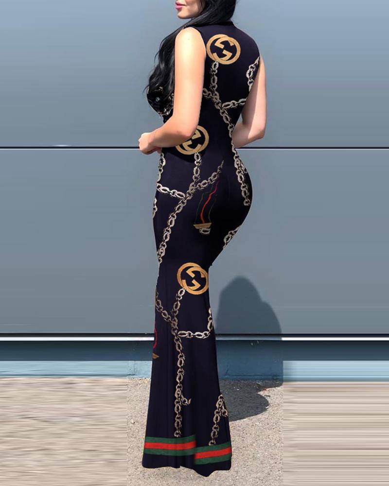 Printed Sleeveless V-neck Stitching Slit Tight Dress