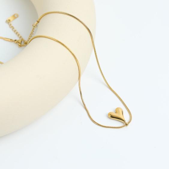 Simple Heart Pendant Stainless Steel 18k Gold-plated Necklace